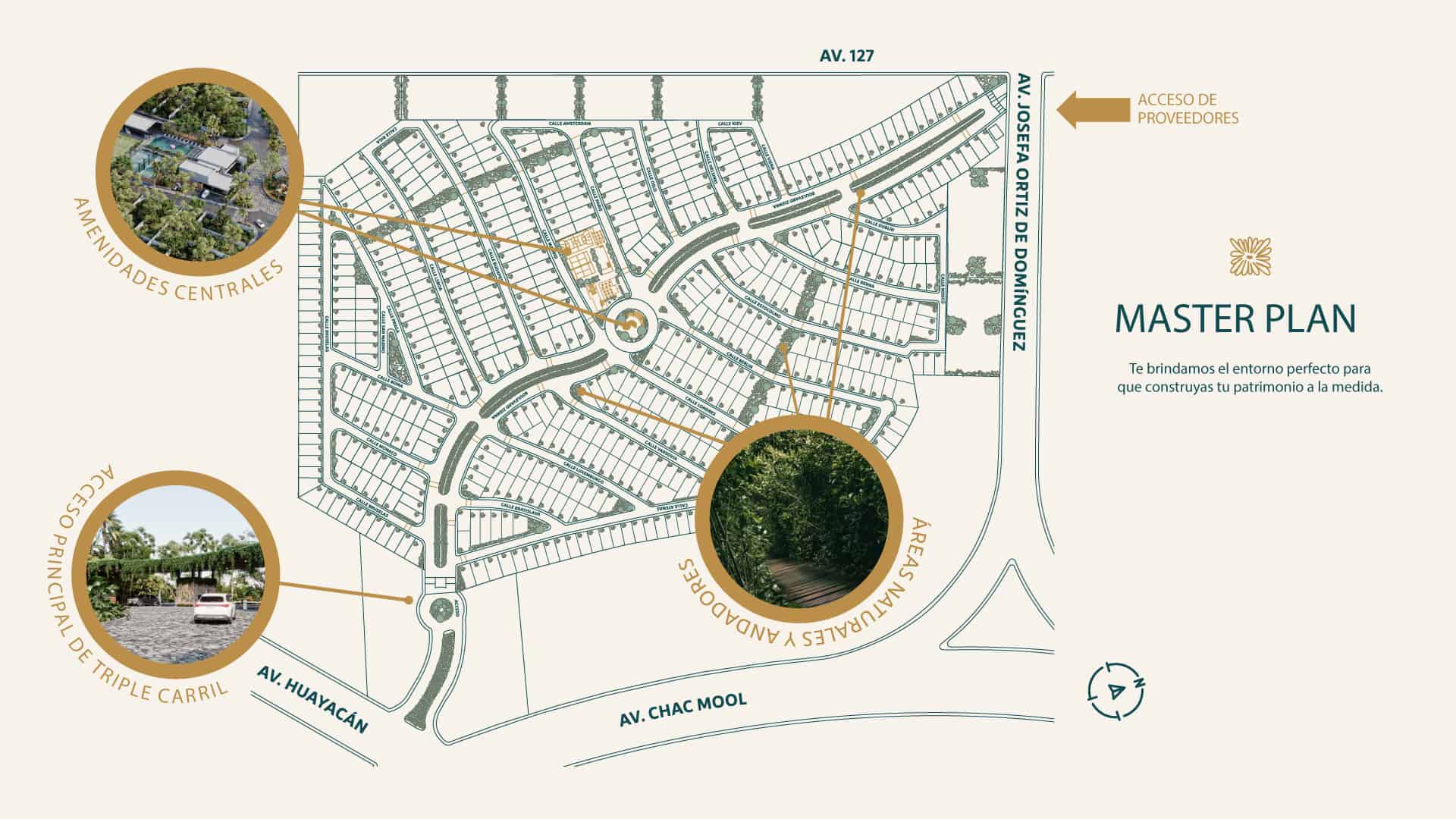 • Infraestructura moderna: servicios subterráneos, vialidades amplias y doble acceso controlado.